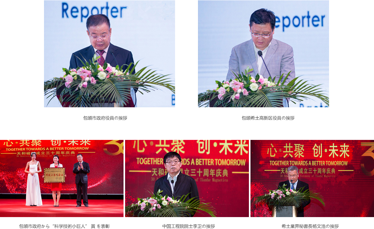市政府役員、院士、業(yè)界専門家顧客及び取引先代表がそれぞれ天和磁材の三十周年を祝う挨拶をし、天和の三十年取得した成果を認め、天和の設(shè)立三十周年を心から祝福をして下さった。