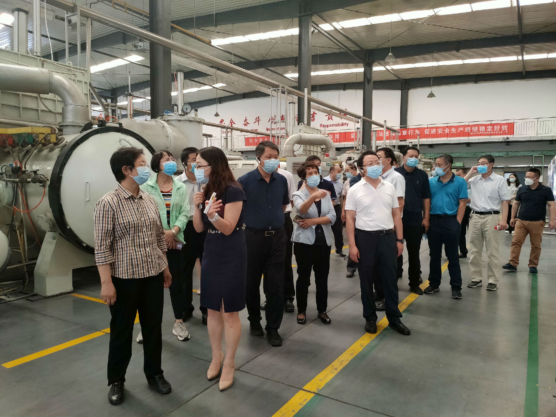 8月17日午前、地域の革新センターの建設(shè)に対して、企業(yè)の研究開発とイノベーションについて理解を深めためのリサーチに、包頭市人民代表大會(huì)常任委員會(huì)主任の烏云氏が代表チームを率いて天和磁材を訪問されました。包頭市副市長の武二斌氏、包頭市科學(xué)技術(shù)局局長の袁宏志氏、希土高新區(qū)黨工委書記の苗玉梁氏、希土高新區(qū)工業(yè)情報(bào)安全監(jiān)督局局長の呉鉄山氏などメンバーも同行されており、総経理の陳雅がリサーチチームを迎えました。