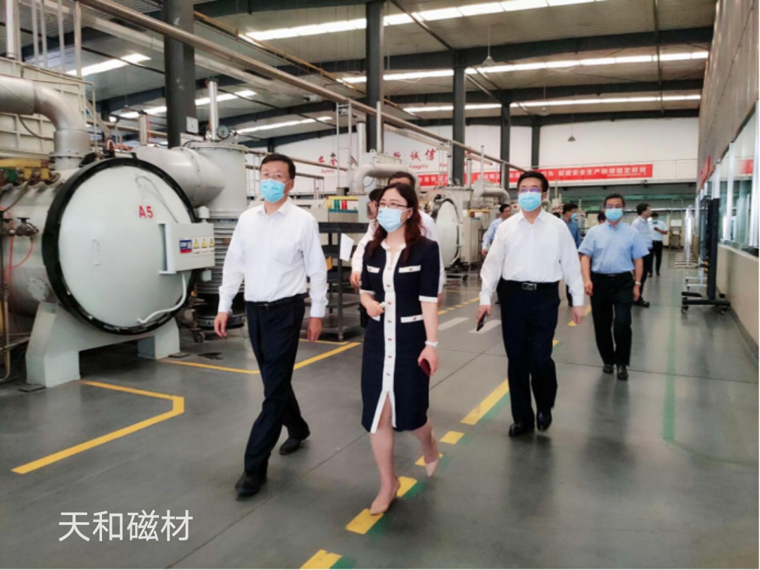 9月13日、青島市政協(xié)黨委員會の楊軍書記?主席のリサーチチームは、市政協(xié)主席楊利民、副市長王秀連等と共に、天和磁材にリサーチのため、來社され、総経理の陳雅がリサーチチームを迎えました。