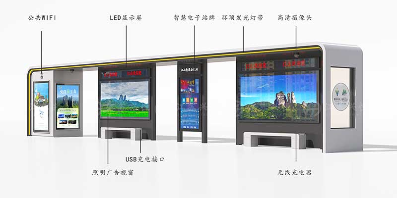- 信息交互窗口:顯示屏還能滾動播放公益廣告、城市資訊、天氣預(yù)警等內(nèi)容,讓候車時間成為市民 “獲取信息的碎片窗口”,兼具服務(wù)性與公益性。