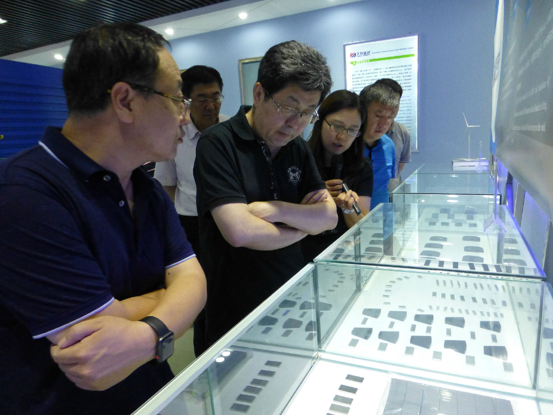 陳雅總經(jīng)理在展廳介紹磁材產(chǎn)品