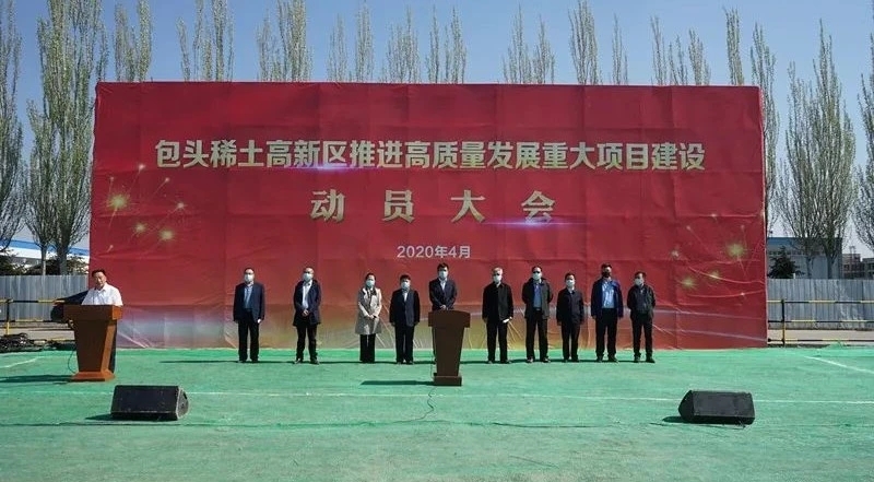4月29日上午,“稀土高新區(qū)推進(jìn)高質(zhì)量發(fā)展重大項目建設(shè)動員大會”暨總投資35.6億元的8個重點(diǎn)項目集中開工儀式在包頭天和磁材高性能釹鐵硼產(chǎn)業(yè)化項目現(xiàn)場隆重舉行。包頭稀土高新區(qū)管委會主任鄔軍軍、副主任楊增壽、李瓊、王樹文、組織人社部部長趙崢,以及駐區(qū)部分企業(yè)家代表和區(qū)屬各有關(guān)部門、單位有關(guān)人員等參加了動員大會。天和磁材董事長袁文杰,總經(jīng)理陳雅參加了動員大會。