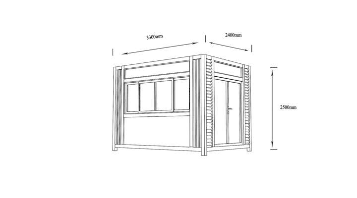 【產(chǎn)品規(guī)格】:長3300mm 寬2400mm 高2500mm